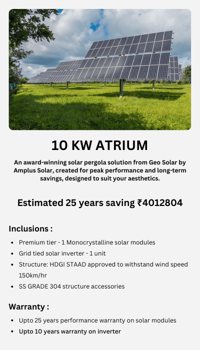 Solar Calculator Geo Solar Get your smart solar home today! 18+MWCAPACITY 6000+CUSTOMERS 20+STATES PRESENCE 250+TRUSTED PARTNERS Pin Code State City Electricity Bill(₹) Name Phone No. E-mail I agree to the Geo Solar Terms. By clicking on calculate you are giving consent to receive calls Calculate
